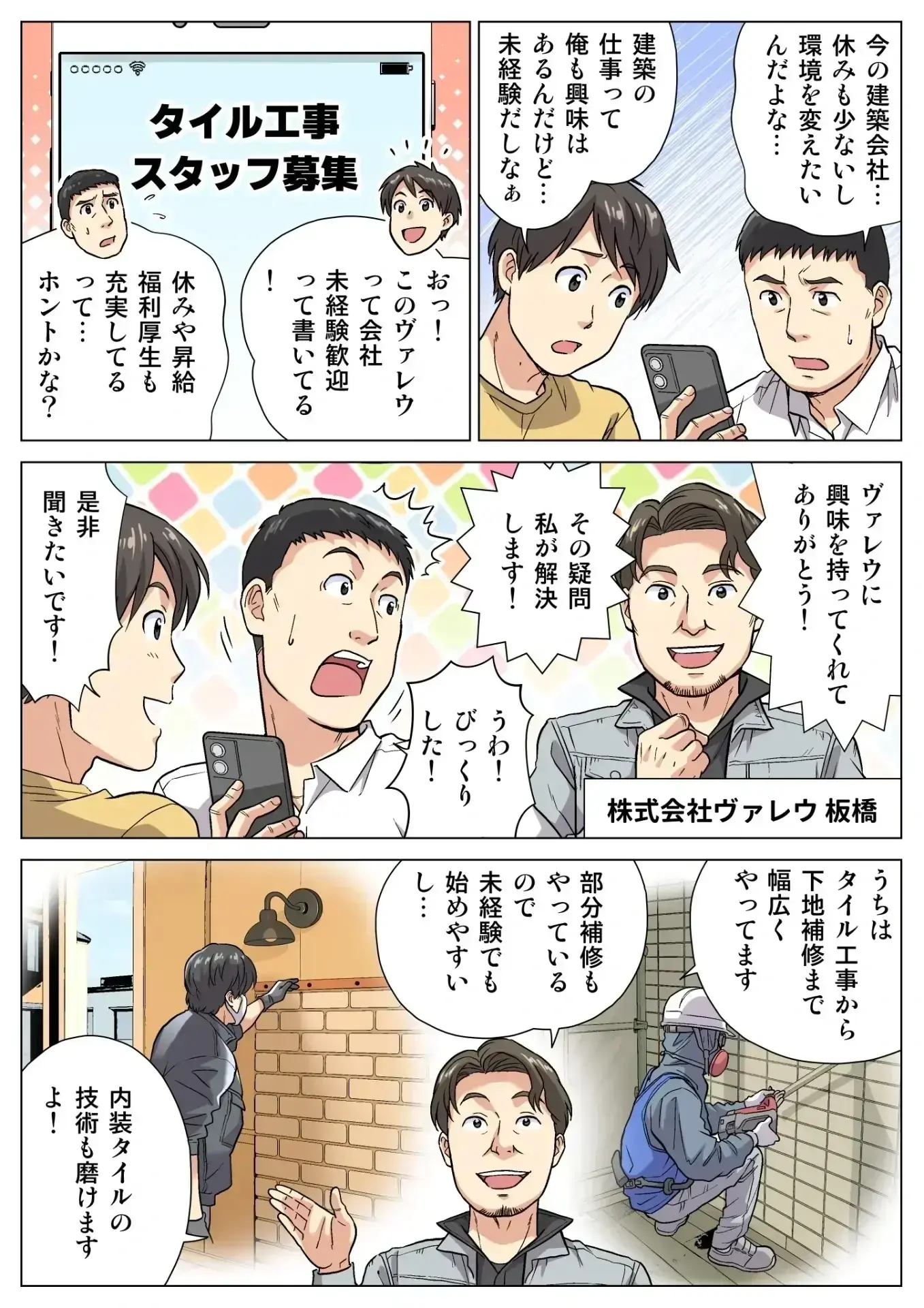現場によって集合場所は違います。毎朝朝礼を行い職人チームで危険予知活動など体調管理と現場での危険事項の確認をおこないます。